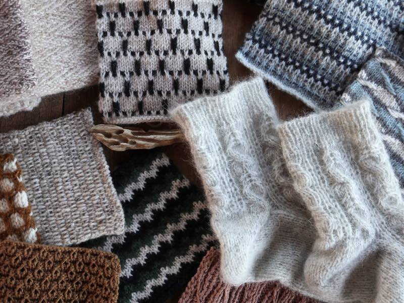 – Strikkeprøver: Vi afprøver forskellige mønstre i praksis og og kigger bl.a. på garn- og farvevalg.